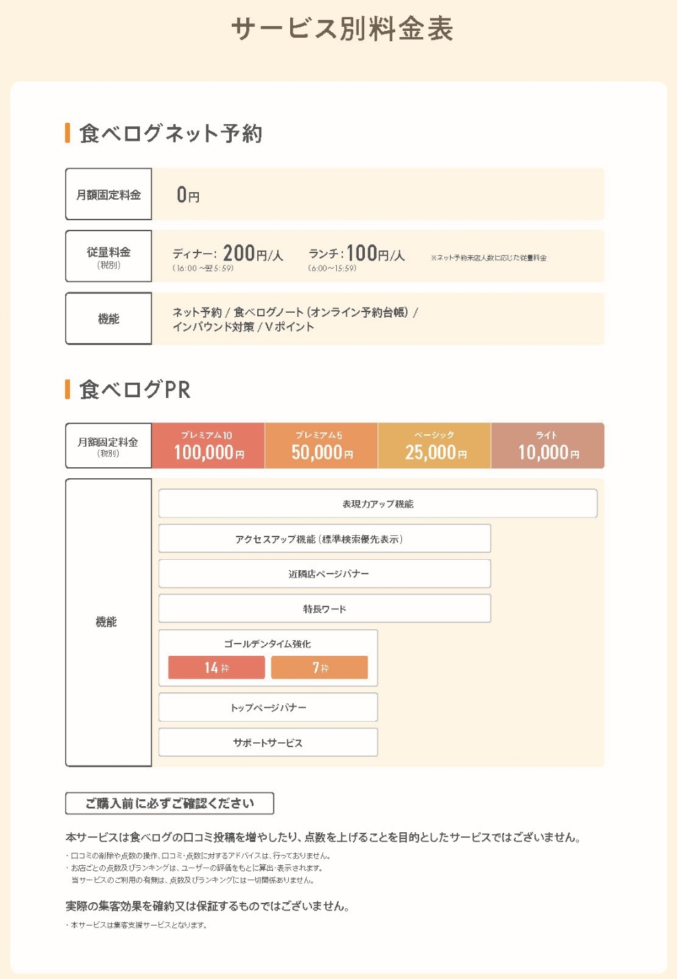 食べログ店舗会員向けサービスの詳細について